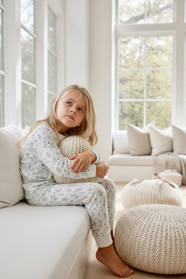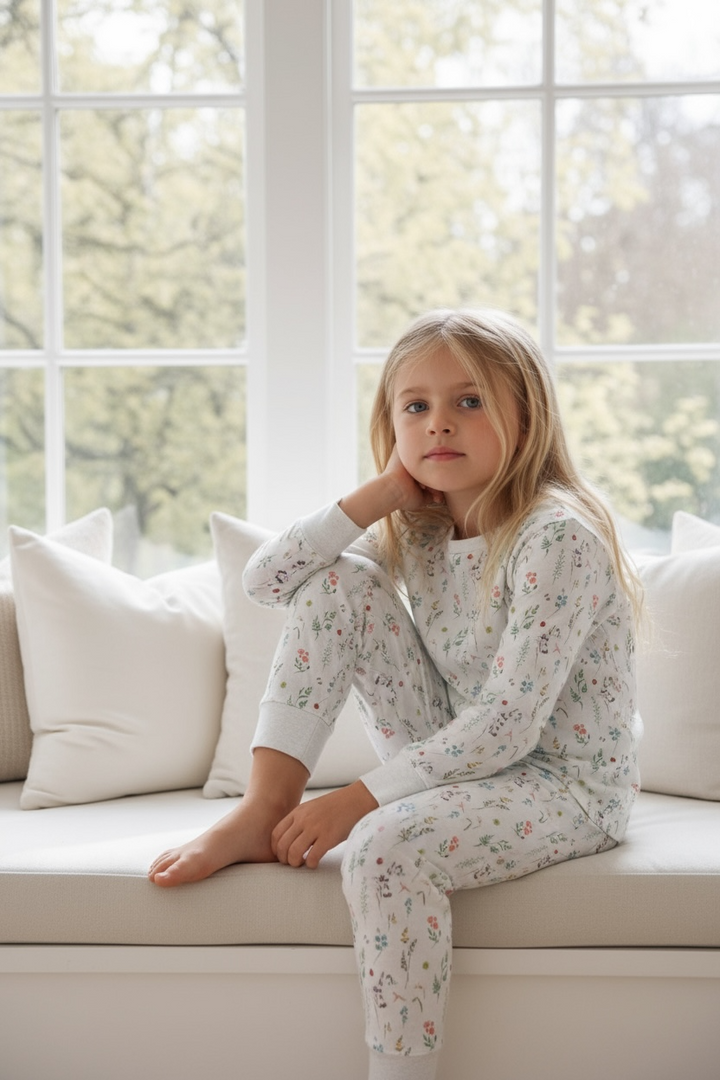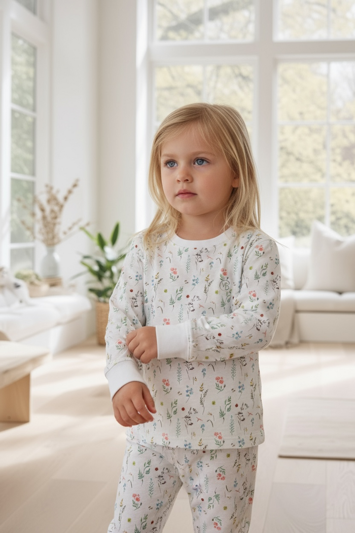 Pijama de Niñas en Algodón Pima – Flores 🌸