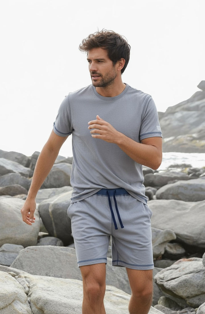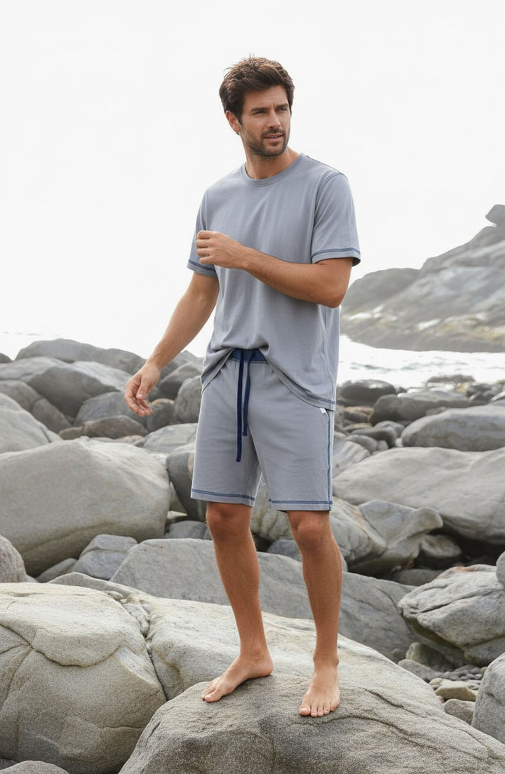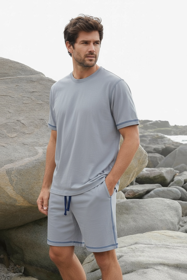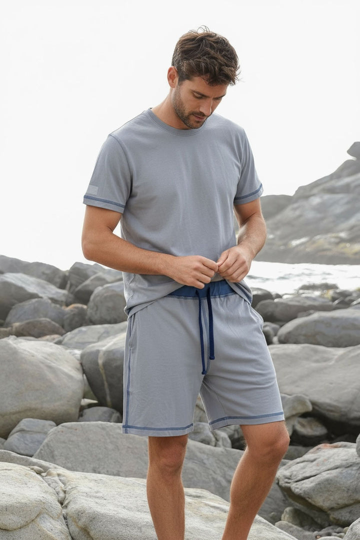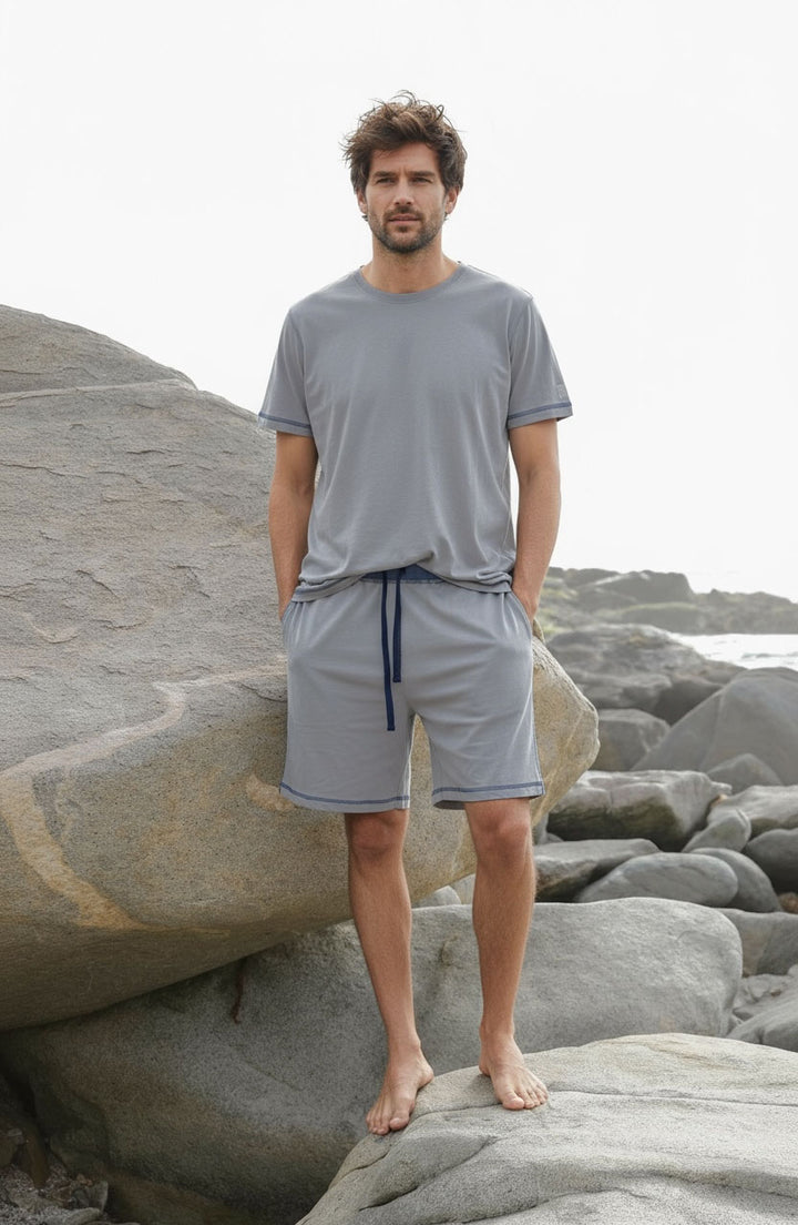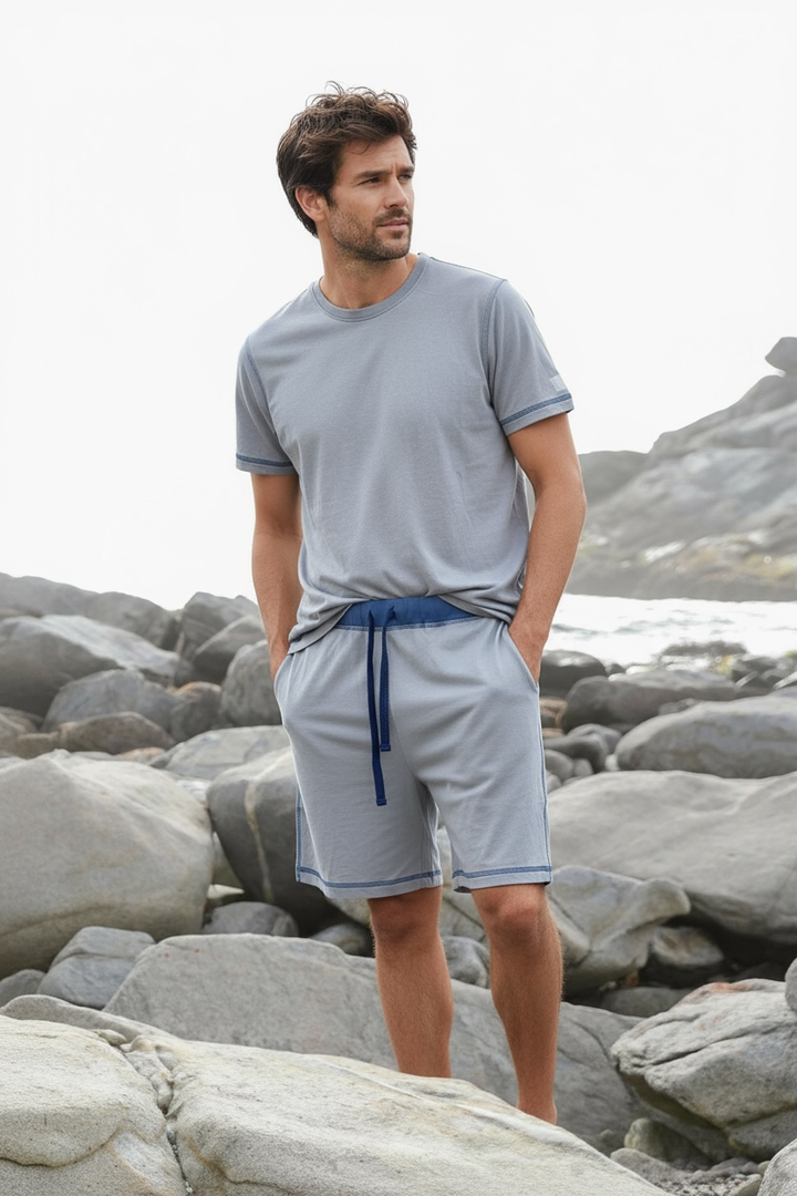 Pijama de algodon pima corto estampado con la elegante flor de lis. Short con bolsillos y cintura con elástico y cordón para mayor comodidad. La molderia es mas bien skinny, si te gusta mas suelto elegi un talle mas