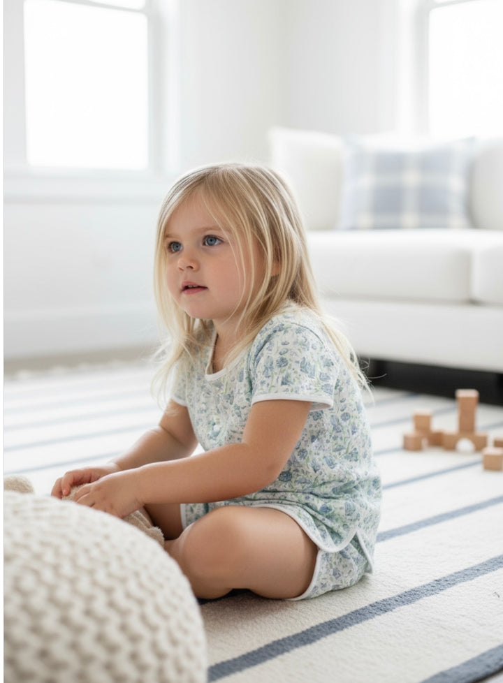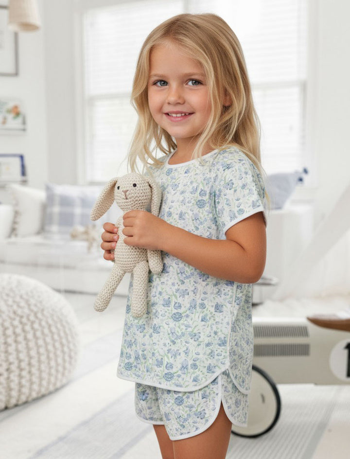 Pijama de Niñas en Algodón Pima – Flores 🌸