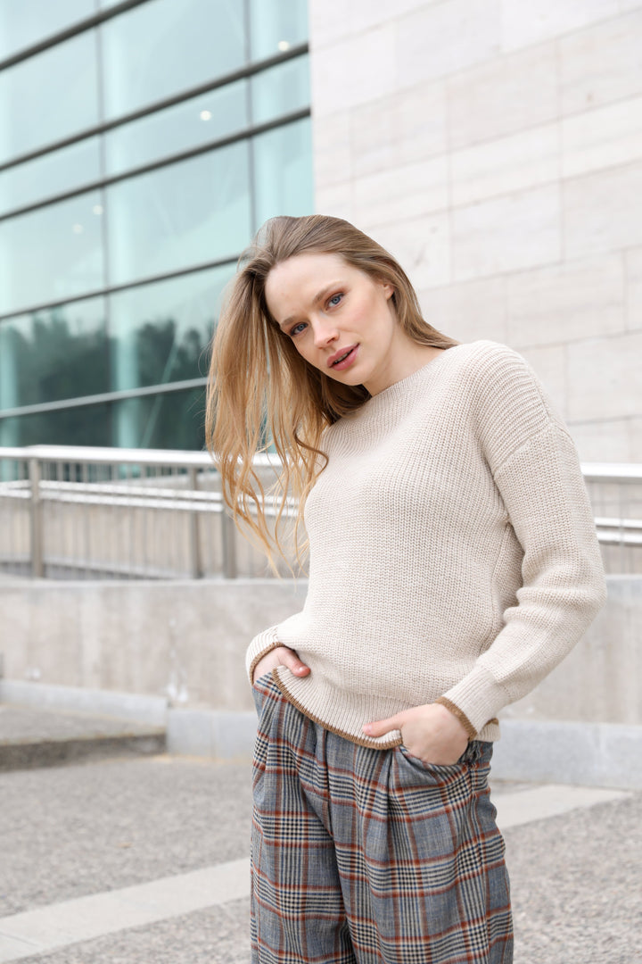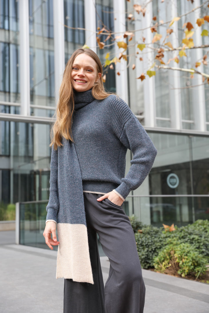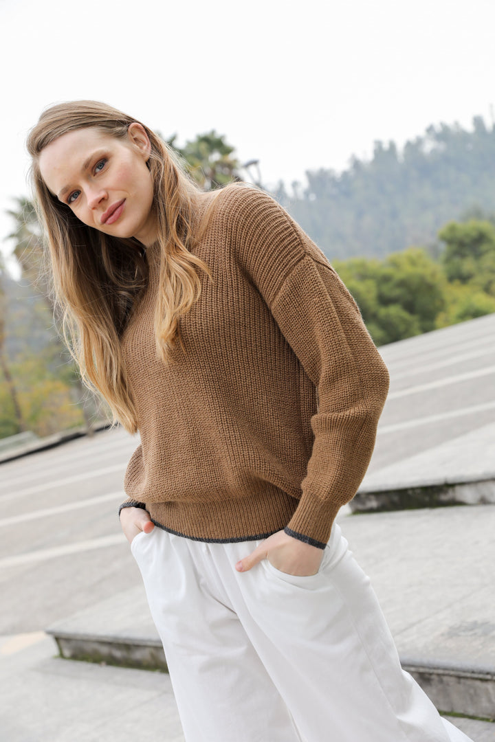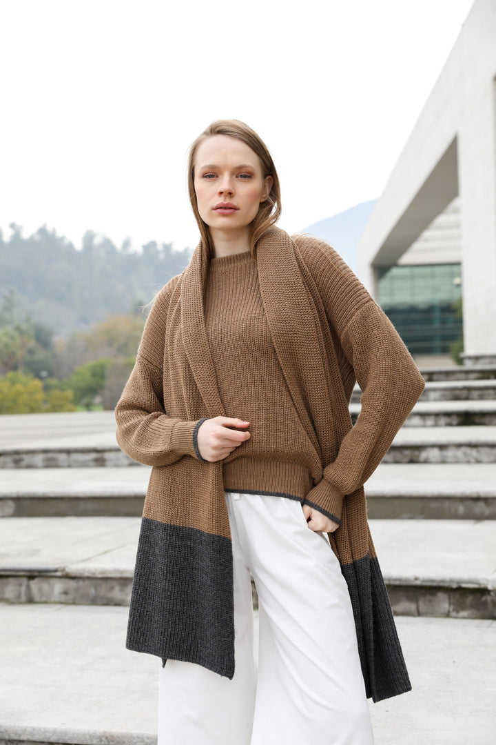 Confeccionado con una mezcla de 50% alpaca, 10% lana y 40% acrílico, combina la suavidad y calidez de la alpaca con la resistencia de la lana y el acrílico, garantizando una prenda duradera y ligera.